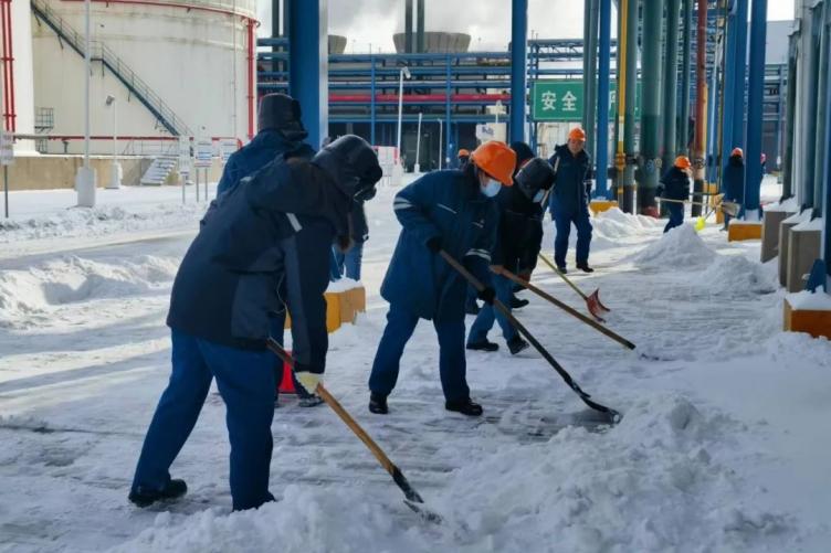 面對(duì)突如其來的大雪嚴(yán)寒極端天氣,公司迅速啟動(dòng)了《惡劣天氣專項(xiàng)應(yīng)急預(yù)案》,明確劃分各部門工作職責(zé)及掃雪專區(qū),持續(xù)開展鏟冰除雪工作。各部室分別組建清雪突擊隊(duì),對(duì)裝置區(qū)及辦公區(qū)等積雪深厚區(qū)域進(jìn)行及時(shí)處置。公司還安排一臺(tái)灑鹽水罐車和兩臺(tái)裝載機(jī)對(duì)主干道進(jìn)行了全面清理,確保道路安全通暢,保障生產(chǎn)正常運(yùn)轉(zhuǎn)。