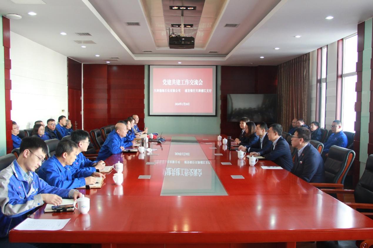 1月24日下午,天津渤海石化有限公司與浦發(fā)銀行天津浦江支行開(kāi)展了黨建共建工作交流活動(dòng)。渤海石化黨委書(shū)記、董事長(zhǎng)郭子敬,黨委副書(shū)記、工會(huì)主席李建義,總會(huì)計(jì)師李薇,浦江支行黨支部書(shū)記、行長(zhǎng)趙博,副行長(zhǎng)于金普及雙方黨員代表參加了此次活動(dòng)。