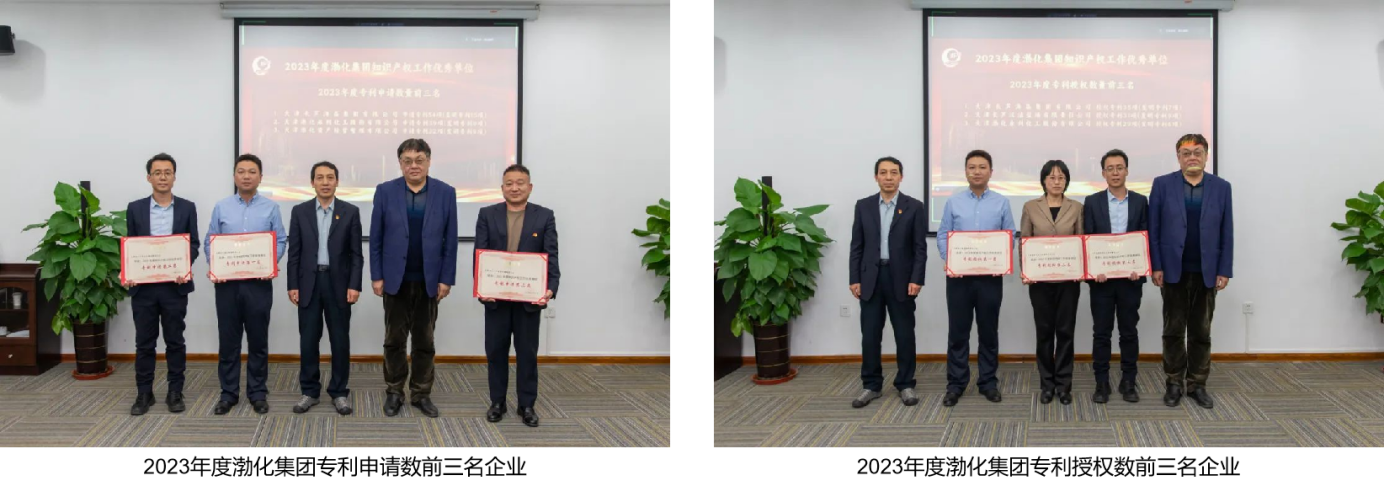 渤化集團堅定不移實施創(chuàng)新驅(qū)動發(fā)展戰(zhàn)略,在持續(xù)營造有利于科技企業(yè)成長的良好環(huán)境方面,按照“保存量、促增量、育幼苗、引優(yōu)苗、建生態(tài)”的思路推進科技企業(yè)梯次培育工作取得積極成效;在掌握自主核心知識產(chǎn)權(quán)、強化重點領(lǐng)域?qū)@诰蚣安季址矫妫?023年度實現(xiàn)專利申請280項(發(fā)明專利83項);專利授權(quán)177項(發(fā)明專利47項)。集團所屬各單位真抓實干,扎實推動科技創(chuàng)新工作走深走實,為集團發(fā)展做出了積極貢獻(xiàn),在本次大會上對2023年度渤化集團新增科技企業(yè)、知識產(chǎn)權(quán)工作優(yōu)秀單位、優(yōu)秀科創(chuàng)服務(wù)機構(gòu)等進行了表彰,同時對渤化集團參展第七屆世界智能大會支持單位頒發(fā)了感謝信,并舉行石油和化工行業(yè)聚氯乙烯金基無汞催化劑及應(yīng)用工程研究中心揭牌儀式。