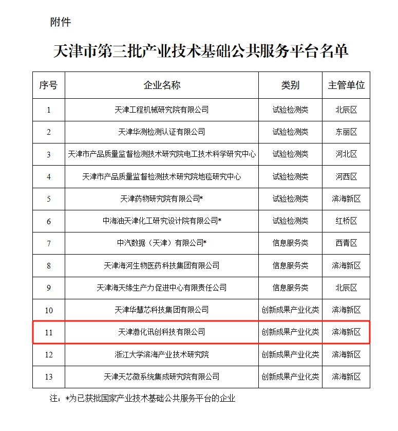 喜報丨渤化訊創(chuàng)成功獲批天津市產業(yè)技術基礎公共服務平臺