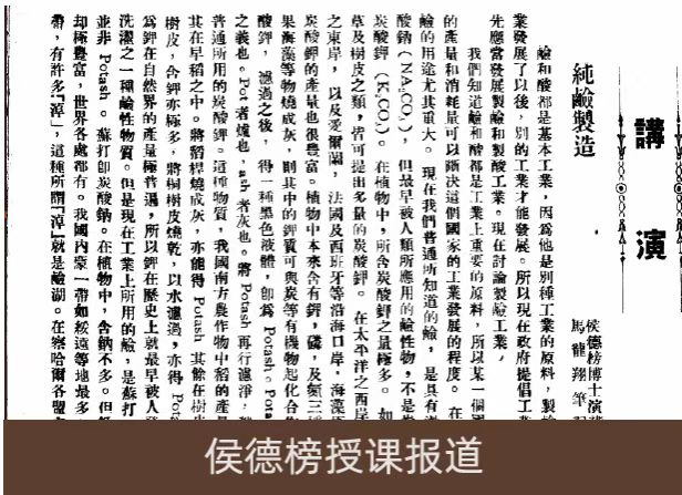 1925年,北洋大學(xué)開設(shè)工業(yè)化學(xué)講堂,講授工業(yè)化學(xué)等課程,開展實(shí)驗(yàn)、實(shí)習(xí),正式宣告了天大化工學(xué)科的啟航。這一時(shí)期,渤化集團(tuán)創(chuàng)業(yè)先輩、侯氏制堿法的創(chuàng)始人、中國(guó)重化學(xué)工業(yè)的開拓者侯德榜先生受聘擔(dān)任特約講師,講授了《硫酸制造》《工業(yè)用水》《純堿制造》等課程,他精心準(zhǔn)備的講義,日后被整理為國(guó)內(nèi)首部化工工藝專著 《制堿工學(xué)》 ,成為一代化工學(xué)人的啟蒙燈塔,為我國(guó)民族化學(xué)工業(yè)人才培養(yǎng)、技術(shù)發(fā)展起到了積極的作用。