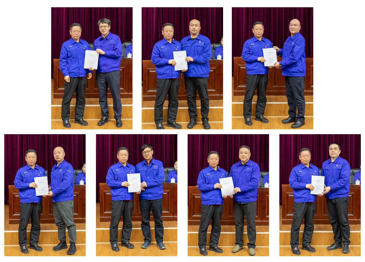 ▲研究總院、大沽化工、渤化發(fā)展、渤海化學(xué)、漢沽鹽場、精細(xì)公司、渤化資產(chǎn)7家2026年重點(diǎn)科技項(xiàng)目承擔(dān)單位負(fù)責(zé)人遞交任務(wù)書