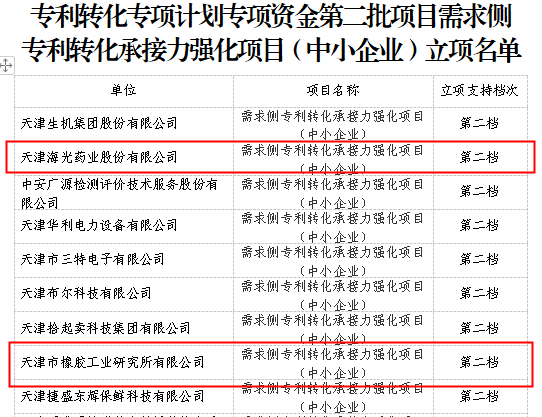 近日,天津市知識產(chǎn)權(quán)局組織開展天津市專利轉(zhuǎn)化專項計劃資金項目申報及評審工作,渤化集團所屬渤化訊創(chuàng)、海光藥業(yè)、橡研所3家公司經(jīng)單位申報、初審、專家評審、網(wǎng)上公示、局黨組會審議等程序,成功獲批天津市專利轉(zhuǎn)化專項計劃專項資金支持項目,擬獲得80萬元專項資金支持。