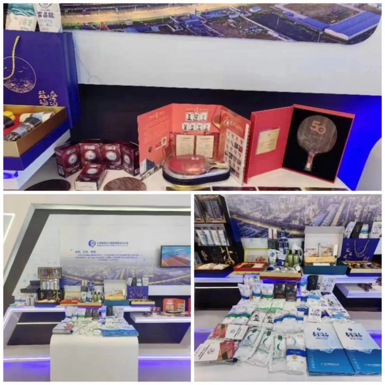 本次活動(dòng)集團(tuán)在天津?qū)嶓w館中布展,以“圖片+視頻+實(shí)物+場(chǎng)景搭建”為手段,結(jié)合新型多媒體技術(shù)和現(xiàn)場(chǎng)活動(dòng),集中展示了渤化集團(tuán)自主品牌的發(fā)展創(chuàng)新成就。主要參展展品包括729公司球拍、套膠等體育用品;漢沽鹽場(chǎng)的食用鹽系列、海鹽洗護(hù)系列、小肽系列、鹽之灸;海晶集團(tuán)的塑封產(chǎn)品、氟化工等集團(tuán)特色產(chǎn)品。