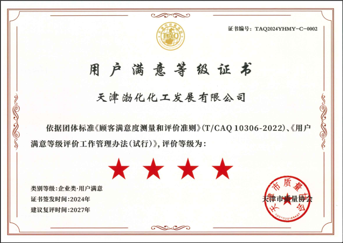 為提升服務(wù)質(zhì)量與市場競爭力,渤化集團(tuán)依據(jù)《顧客滿意度測量和評價準(zhǔn)則》(T/CAQ10306 - 2022),大力推動旗下企業(yè)開展用戶滿意等級評價工作。在集團(tuán)的積極引導(dǎo)下,海晶集團(tuán)和渤化發(fā)展踴躍參與,嚴(yán)格按照標(biāo)準(zhǔn)完善服務(wù)體系、優(yōu)化產(chǎn)品質(zhì)量。