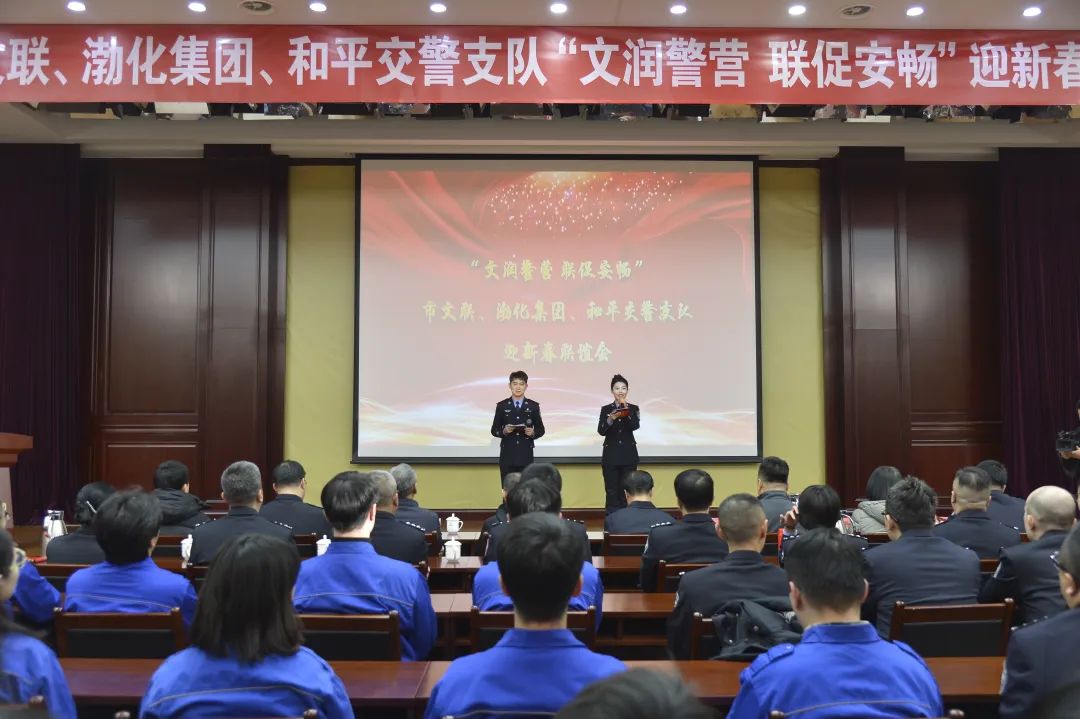在新春佳節(jié)即將到來之際,渤化集團與市文聯(lián)、和平交警支隊共同舉行的“文潤警營 聯(lián)促安暢”迎新春聯(lián)誼會活動在渤化集團成功舉辦。渤化集團黨委副書記、工會主席王星煒,天津市公安局交警總隊政委高洪景,天津市文聯(lián)黨組成員、二級巡視員劉志勇等出席聯(lián)誼活動。