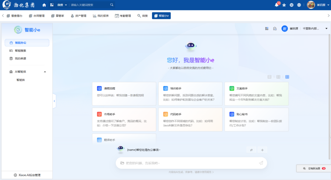 與此同時,集團引入智能辦公助手,進一步完善了企業(yè)的數(shù)字化辦公體系。其基于先進的人工智能技術(shù),能理解自然語言,實現(xiàn)智能交互,為員工提供7×24小時的智能化服務。員工只需通過語音或文字與智能助手溝通,就能快速完成數(shù)據(jù)查詢、知識檢索、審批流程等日常辦公任務,極大地提高了工作效率與協(xié)同能力。此外,還具備強大的知識圖譜與智能分析能力,能為企業(yè)提供精準的信息推薦與決策支持,促進知識共享與創(chuàng)新。