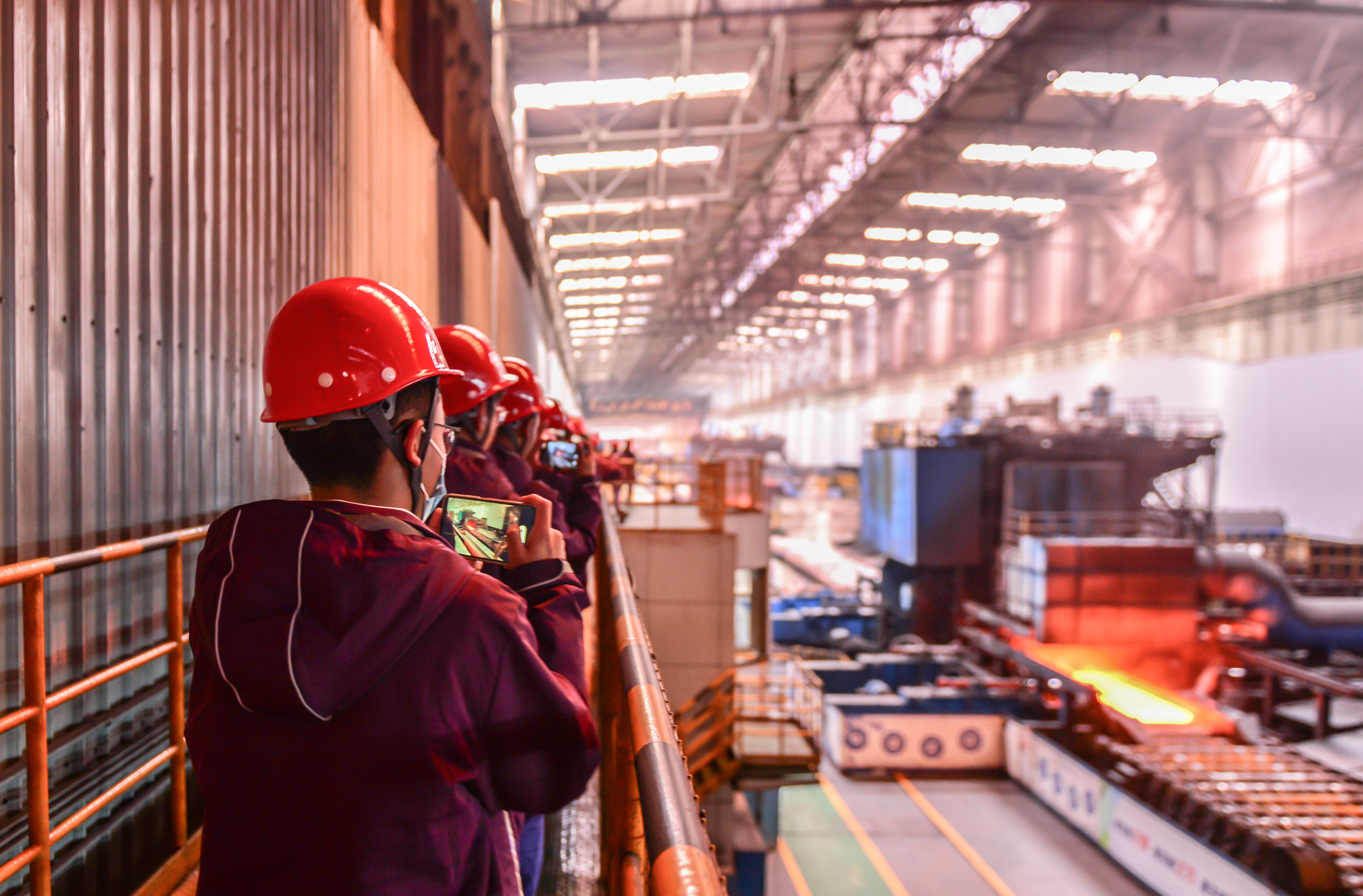 在生產(chǎn)車間,產(chǎn)線正運(yùn)輸著被燒得通紅的鋼材。在參觀通廊上,學(xué)生們可以“沉浸式”了解鋼鐵的鑄造過程。“我們的工業(yè)游包括生產(chǎn)車間、企業(yè)文化展廳以及互聯(lián)網(wǎng)運(yùn)行中心等點(diǎn)位,能夠讓大家從生產(chǎn)、調(diào)度、管控等方面,全方位了解‘鋼鐵是怎樣煉成的’?!辟Z小慧說道。