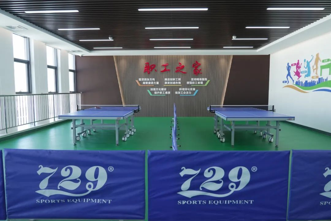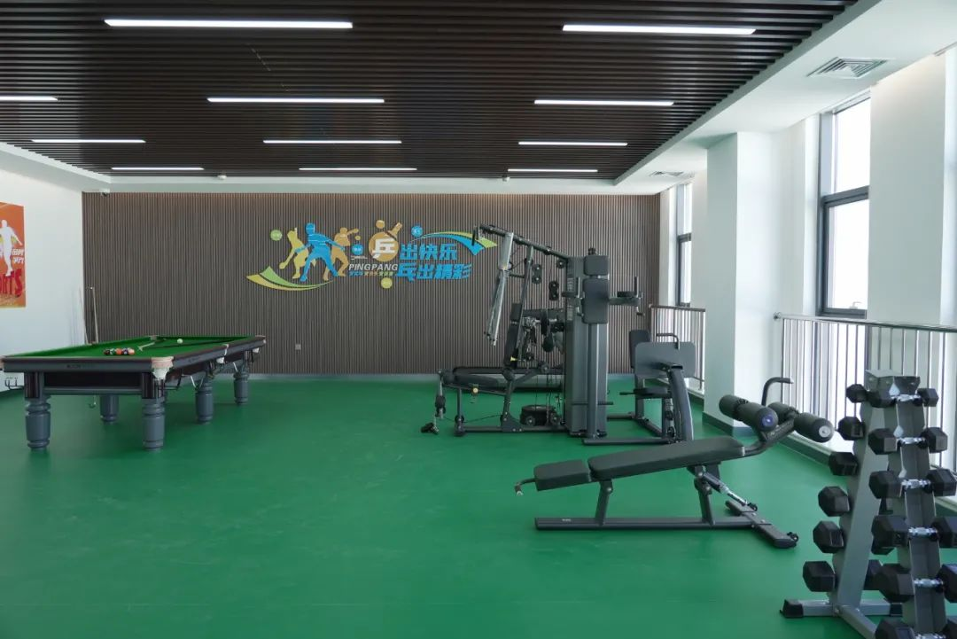 職工活動(dòng)室內(nèi)設(shè)有乒乓球、臺(tái)球、史密斯綜合器械、跑步機(jī)、啞鈴等器械運(yùn)動(dòng)設(shè)施。